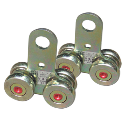我公司生产的纵轨导轮滑车主要用于横轨的悬吊和移动。