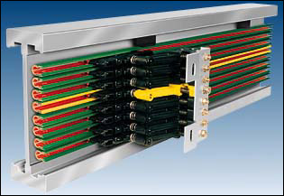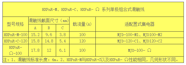 HXPnR-M、HXPnR-C、HXPnR- Ω系列单极组合式滑触线由M型、C型、Ω型铜导管与相配置的PVC绝缘护套、外置式集电器以及与之相对应的支架、端口、喇叭口、接头滑座等组件组合而成。该产品以其体积小、结构紧凑、性能稳定、组合自由等特点被广泛地应用于汽车、邮电、机械、化工、烟草、电器等行业的输送线、检测线作为移动供电和信号传输。