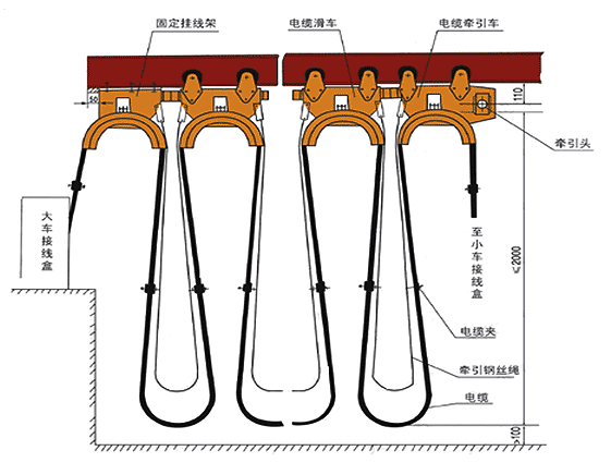 7、当电缆滑车为二层,三层时,要求相同。