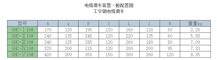 GHC型系列工字钢滑车装置用于移动供电机械在移动中电缆的悬吊与移动,已广泛应用于各类起重机械中。该装置具有结构坚固。移动灵活。安全可靠等优点。