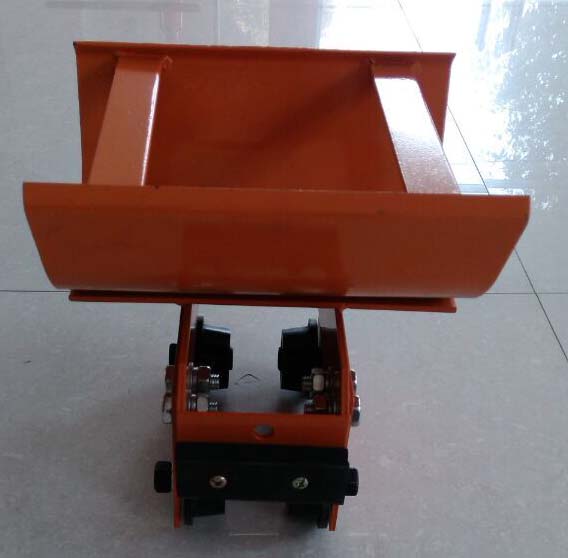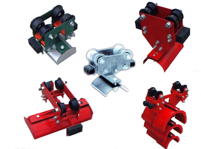GHC型滑车由牵收引滑车、电缆滑车、终端滑车三部分组成,牵引滑车跟随移动机械导缆(牵引)装置,每个移动机械配1个,随移动机械往返运行。中间电缆滑车将电缆悬挂在工字钢轨道范围内随牵引滑车移动,两端并装有缓冲撞头,滑车视移动长度不同而定数量。终端滑车固定在工字钢导轨末端,一般每个移动机械设置1个。